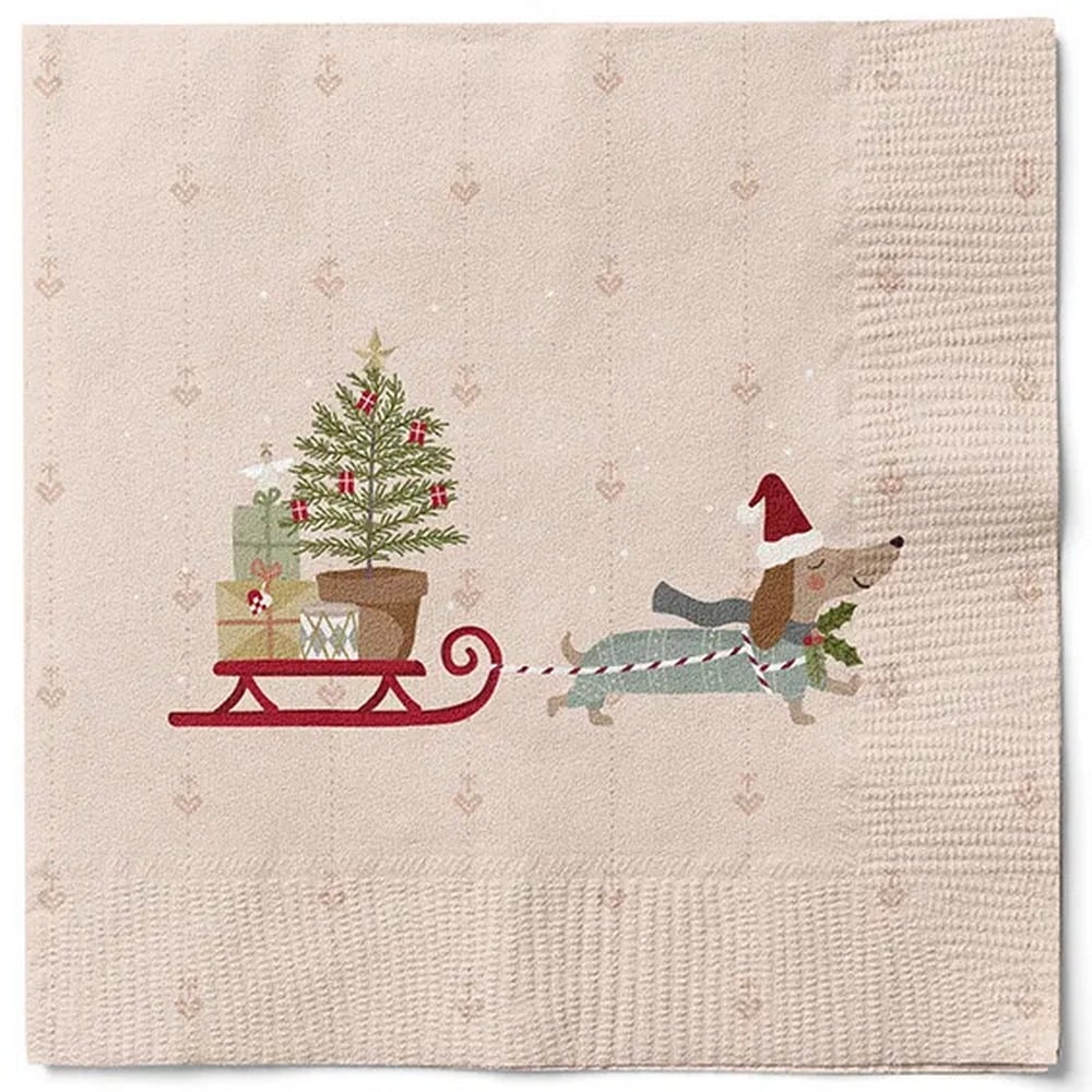 Jule Gravhund Servietter – 20 stk. Frokostservietter