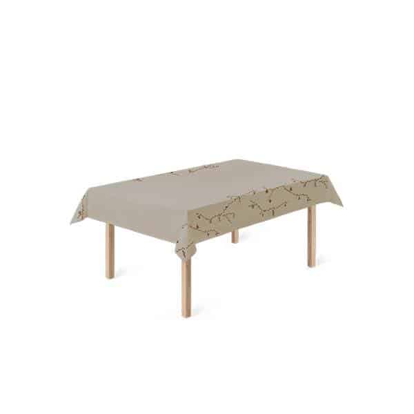 Kähler Hammershøi Christmas juledug Den sandfarvede juledug er udsmykket med traditionelle julemotiver, herunder diskret dekorerede cedergrene med lærkekogler langs dugens kanter, således at motivet bevares synligt, selv når midten af bordet fyldes med fa