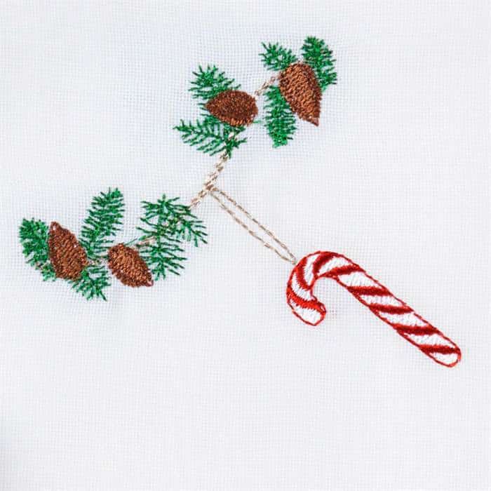 Julestofserviet med sukkerstok De fineste julestofservietter finder du fra Langkilde & Søn. Denne eksklusive og unikke juleserviet er syet i ægte hvid flagdug og broderet med klassisk julemotiv af en sukkerstok. Servietten er utrolig smuk og passer perfek