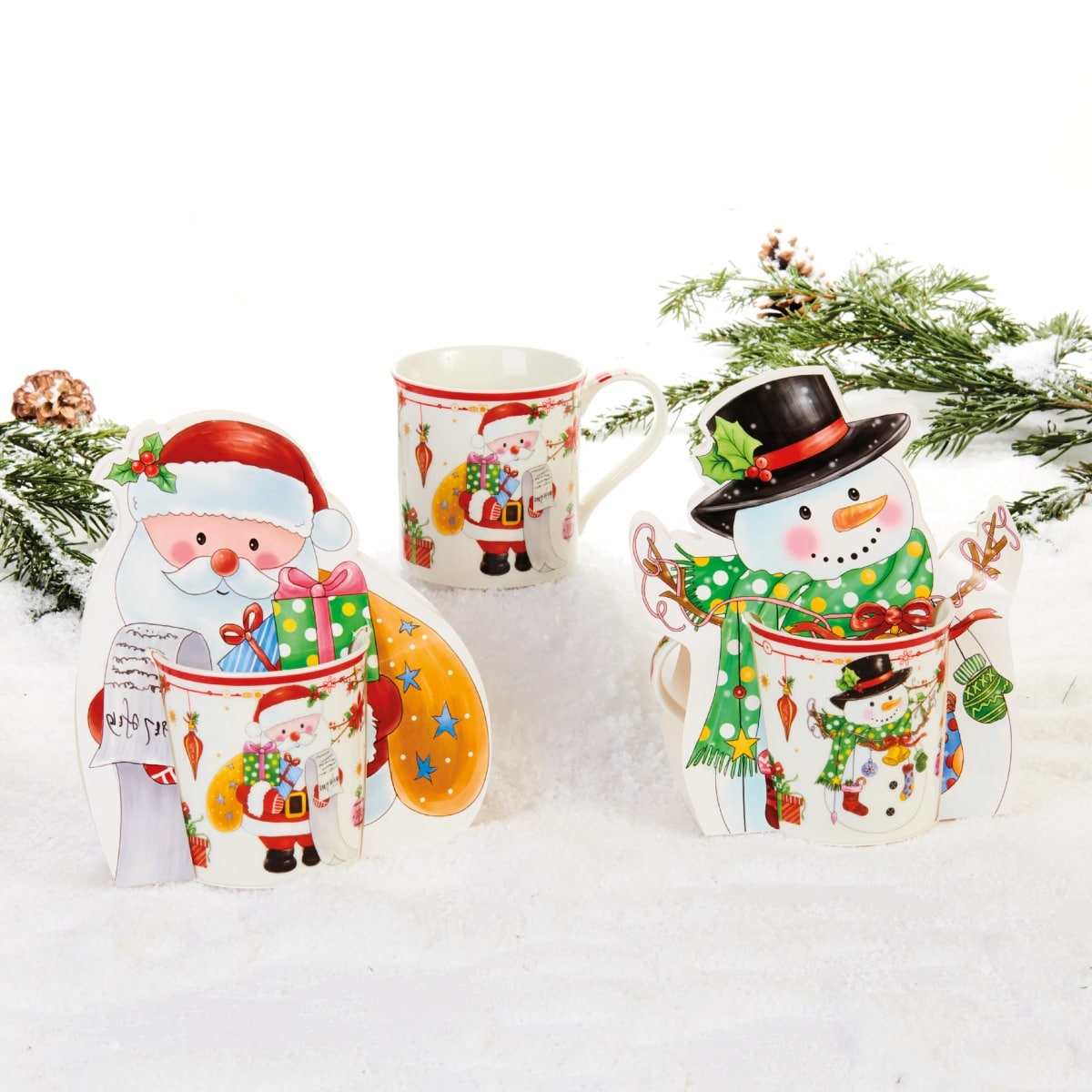 Hvid porcelænskrus med enten julemand eller snemand som motiv og dekorativ papindsats. Krusset måler 8 cm i højden og er perfekt til julens varme drikke, som adventsgave eller blot til decemberhyggen. Fremstillet i porcelæn.Pakket med 1 stk.