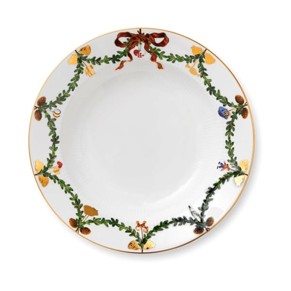 Smuk dyb juletallerken Denne Stjerne Riflet Jul dybe tallerken er velegnet til risengrød men er også ideel som serveringsskål til tilbehør. Blandt julens traditionsrige elementer indtager julestellet fra Royal Copenhagen en særlig plads. På tallerkener, s