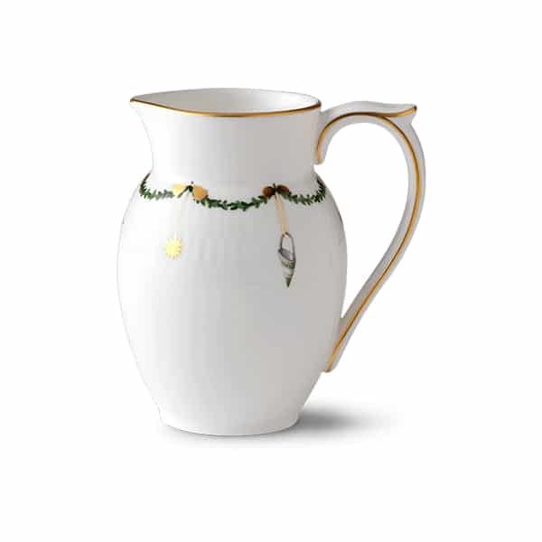 Flødekande på 39 cl fra Royal Copenhagens Stjerne Riflet Jul-kollektion. Rumindhold: 39 cl Materiale: Benporcelæn Stjerne Riflet Jul-stellet fra Royal Copenhagen hører til julens smukke traditioner. Få tallerkener, skåle og kopper dekoreret med elegante s