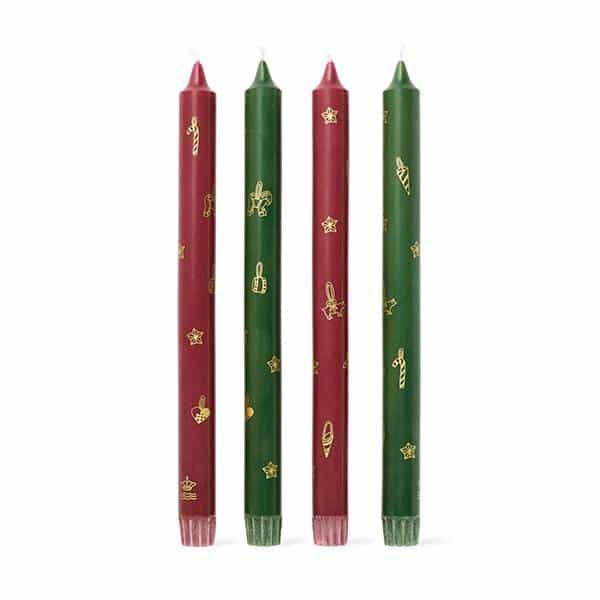 Royal Copenhagen julelys, sæt af fire Skab en stemningsfuld og elegant jul med dette sæt af fire lys fra Royal Copenhagen i klassiske røde og grønne nuancer. Lysene egner sig ideelt som adventslys eller som dekorative elementer i julearrangementer. Dekore