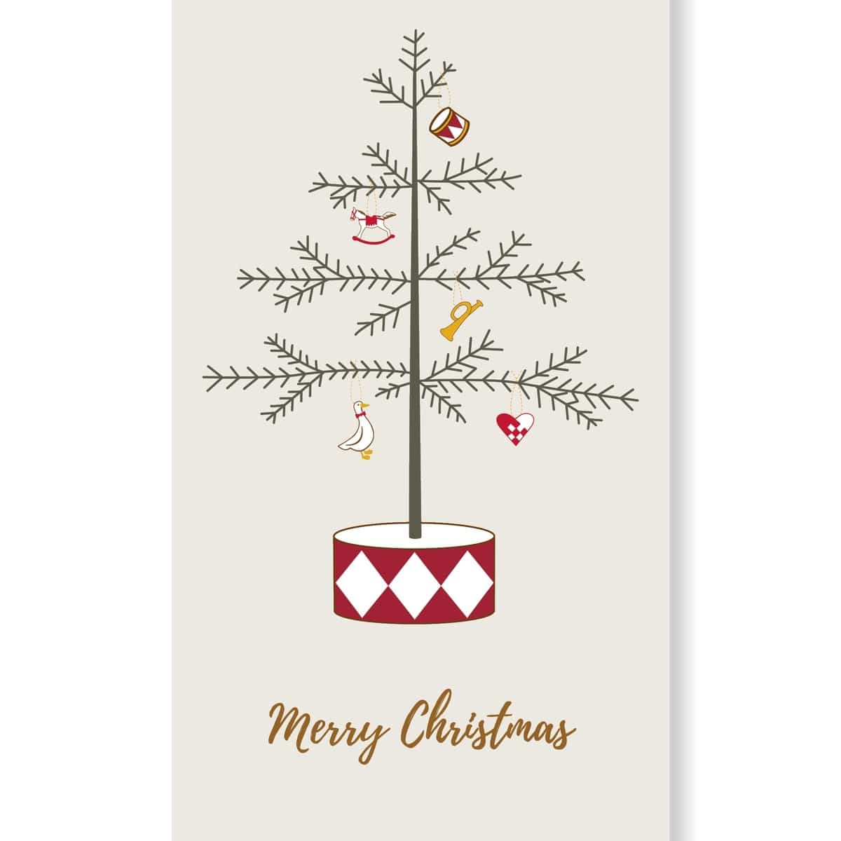 Hyggelige papirservietter til julebordet fra Speedtsberg. Servietterne er dekoreret med teksten Merry Christmas og et modernet, pyntet juletræ i trommeskjuler. De passer godt til både julemiddage, adventshygge og årets festlige sammenkomster. Brug dem sam