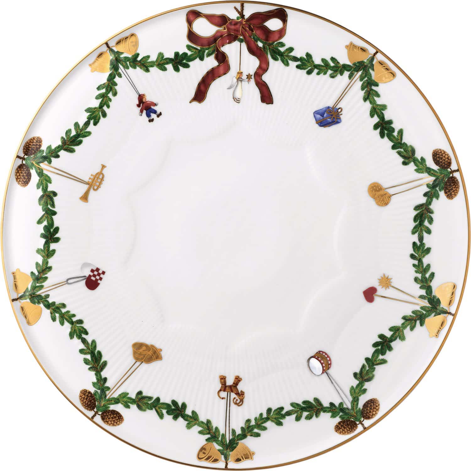 Blandt julens smukke traditioner hører julestellet fra Royal Copenhagen. På tallerkener, skåle og kopper snor granguirlanderne sig højtideligt, dekoreret med elegante silkesløjfer og det fineste pynt. Stjerne Riflet Jul skaber stemning og gør julen til no