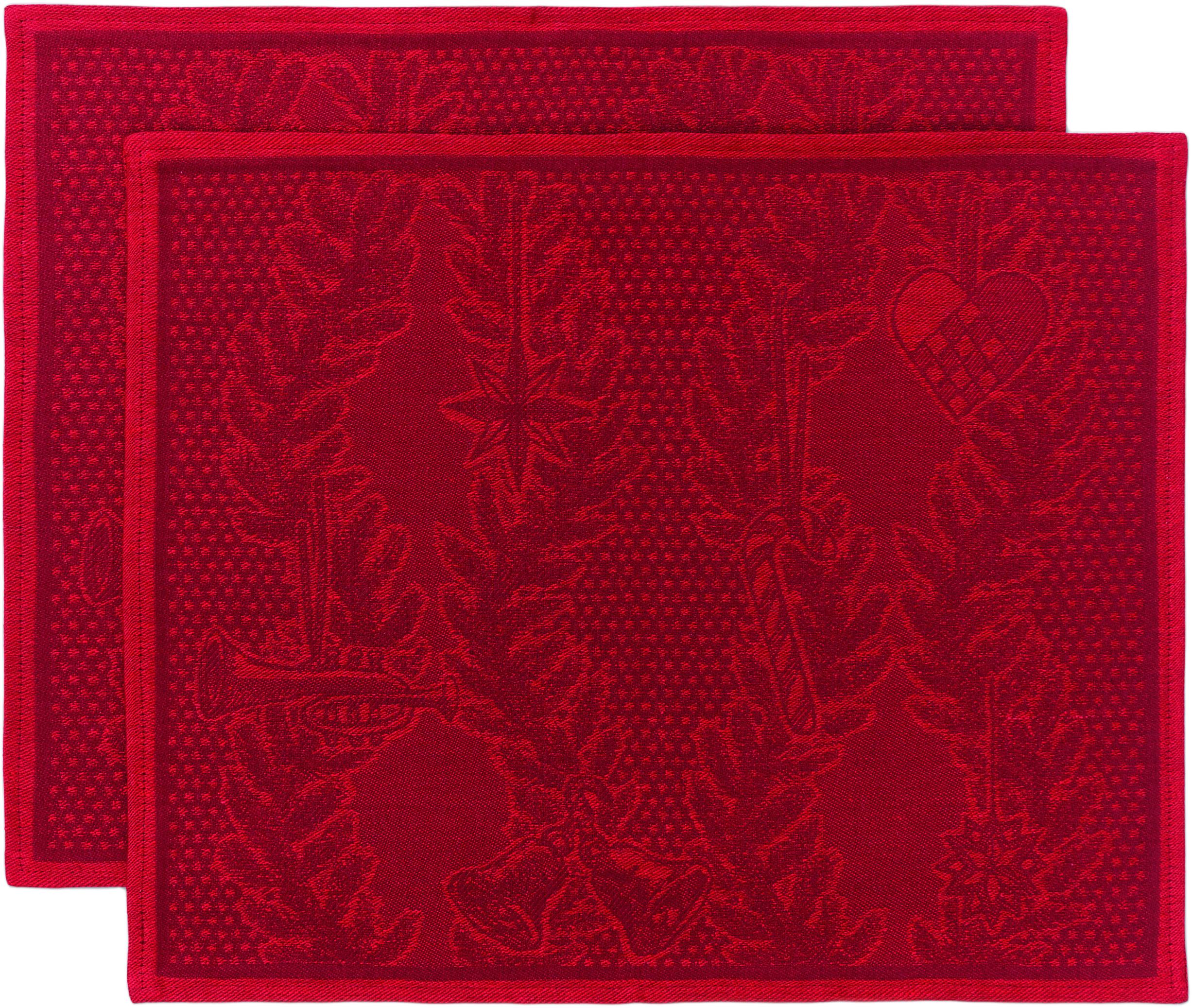 Skab et magisk julebord med de elegante dækkeservietter fra Stjerne Riflet Jul, der fås i sæt af to. Inspireret af det festlige stel er servietterne smukt dekoreret med julepynt som stjerner, hjerter og bånd. Sammen med den varme røde farve indfanger de e