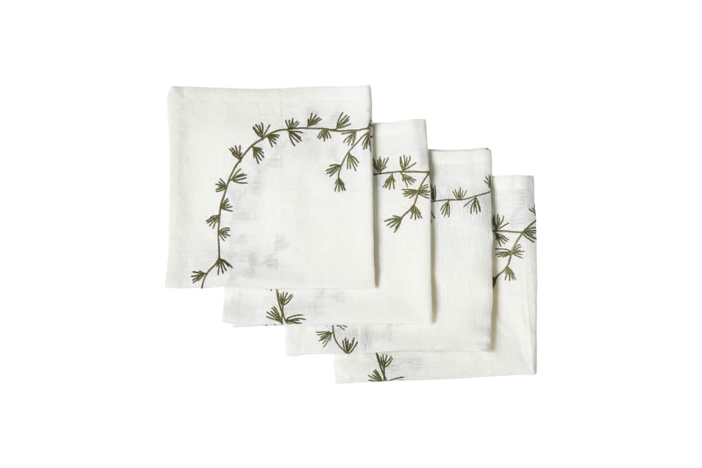 Skab en stemningsfuld og elegant borddækning med disse smukke hvide stofservietter fra Speedtsberg. Servietterne er udsmykket med en fin broderet granguirlande, der tilfører et diskret, vinterligt udtryk og en varm, klassisk julestemning. Den broderede de